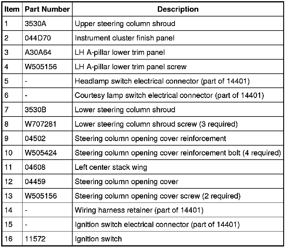 NOTICE: Do not remove the ignition lock cylinder and the ignition switch at the same time or damage to the column may result.