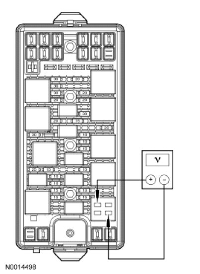 - Measure the voltage between BEC starter relay, circuit 2037 (RD) and ground.