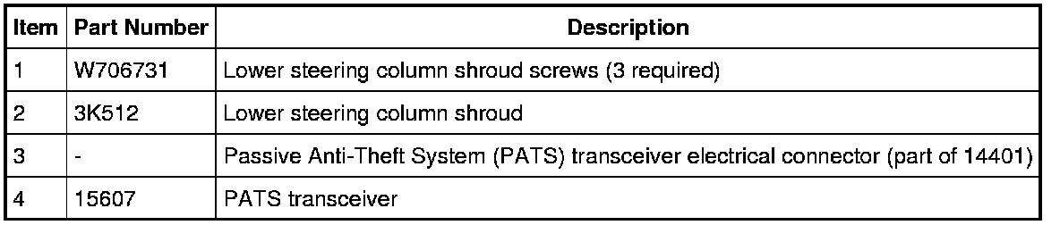 5. NOTE: Replacement of the PATS transceiver does not require the PATS keys to be programmed into the Instrument Cluster (IC) again.