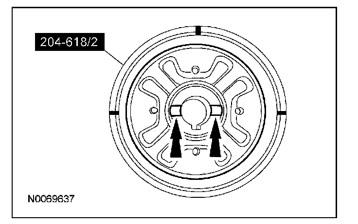 - Make sure the arrow on the Rear Drive Unit (RDU) Bushing Remover/Installers is visible on the bottom and facing away from the subframe. The arrow must remain straight so that the bushings are correctly indexed into the subframe.