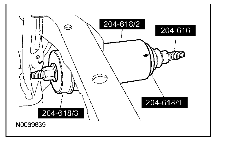 - Make sure the arrow on the Rear Drive Unit (RDU) Bushing Remover/Installers is pointed toward the rear subframe when removing the bushing.