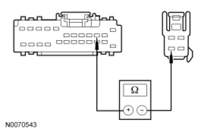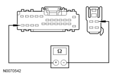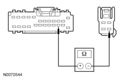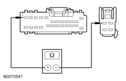 - Measure the resistance between DSM C341C-3, circuit RPP06 (GN), harness side and adjustable pedal motor C2159-4, circuit RPP06 (GN), harness side.