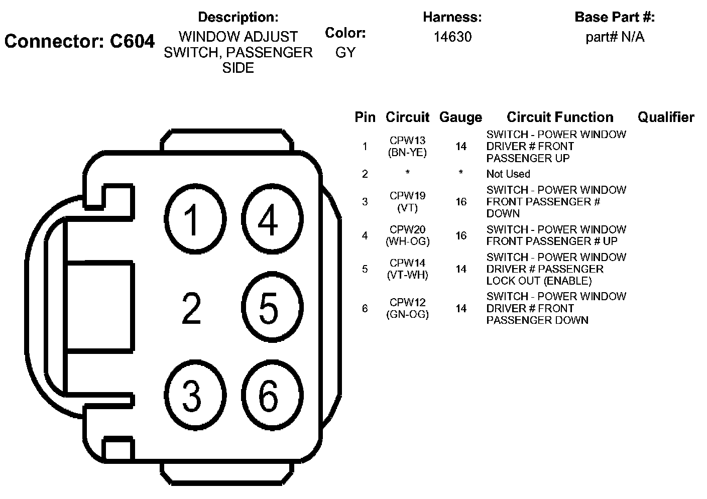 Window Adjust Switch, Passenger Side