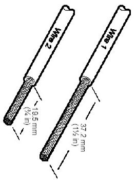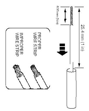 2. Strip 6.35mm (1/4 in) of insulation from each wire end, taking care not to nick or cut wire strands.