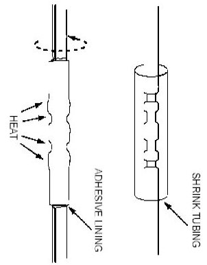 13. Use shielded heat gun to heat the repaired area until adhesive flows out of both ends of the heat shrink tubing.