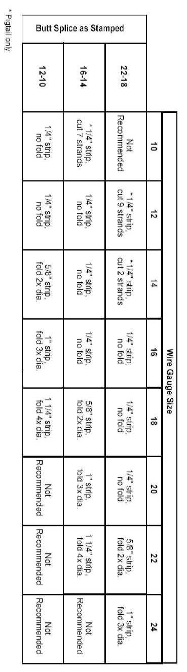 Recommended splicing method - Crimp (For 10-22 AWG Diameter Wire to Like Wire Diameter)