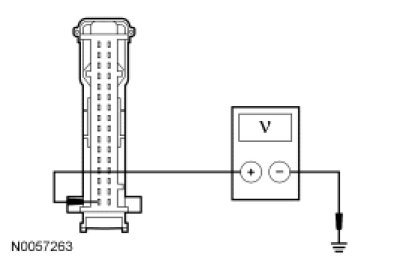 - Measure the voltage between the RETM C9029-16, circuit SBP03 (BU/RD), harness side and ground.