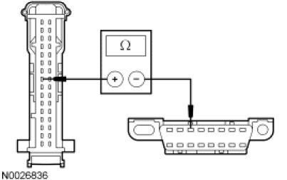- Measure the resistance between the RETM C9029-8, circuit VDB06 (GY/OG), harness side and the DLC C251-3, circuit VDB06 (GY/OG), harness side.