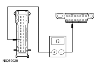 - Measure the resistance between the SJB C2280b-38, circuit VDB07 (VT/OG), harness side and the DLC C251-11, circuit VDB07 (VT/OG), harness side.