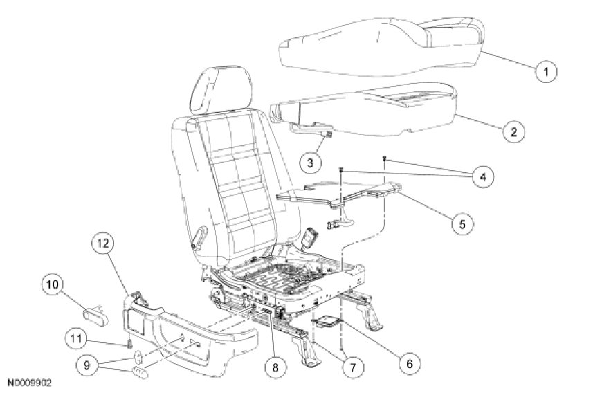 NOTE: Power seat shown, manual seat similar.