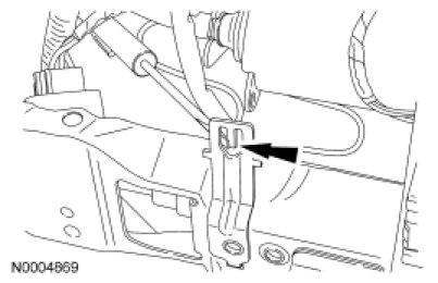 8. Disconnect the pressure sensor electrical connector, bend and release the retaining tab and slide the pressure sensor off the bracket.