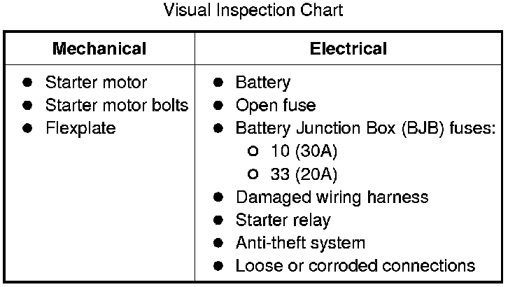 NOTE: The anti-theft system must be functioning correctly before a logical starting system diagnosis can be carried out. Address anti-theft system concerns before continuing. Refer to Antitheft and Alarm Systems.