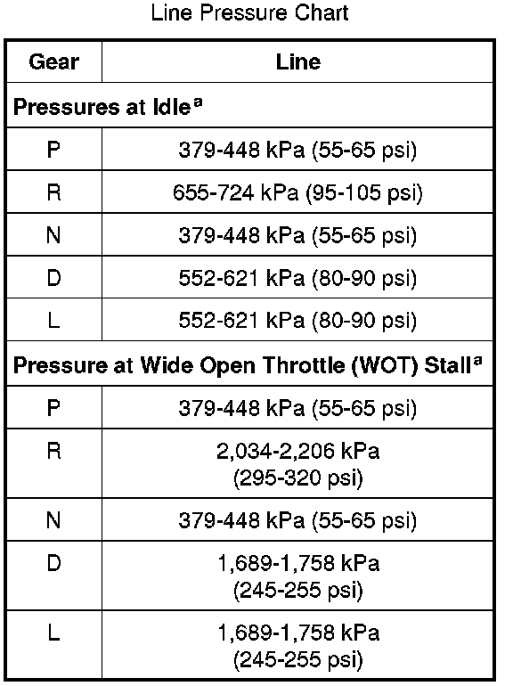 Line Pressure Chart: