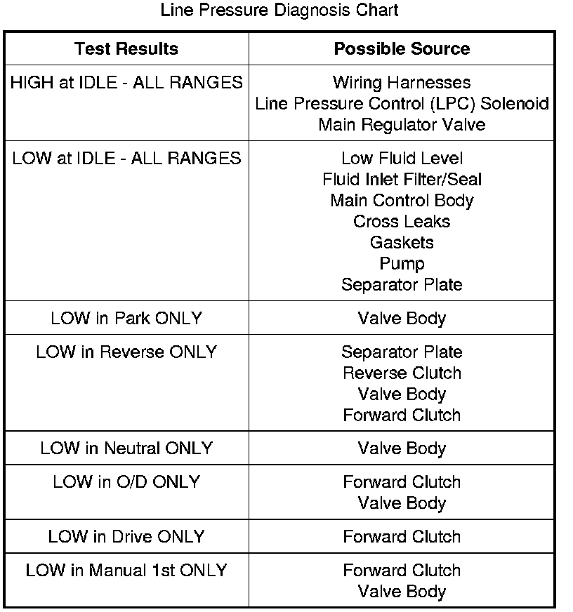 2. Start the engine and check the line pressures see the line pressure chart to determine if the line pressure is within specification.