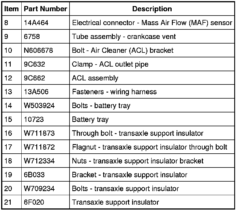 13. Remove the upper battery tray bolt and nut. Release the Power Distribution Box (PDB) fasteners. Remove the battery tray and bracket.