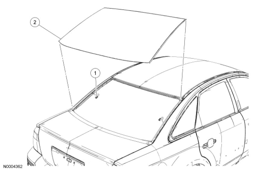 NOTICE: Before positioning the rear window glass, open vehicle windows to prevent the air pressure of closing doors from affecting the urethane adhesive bond.