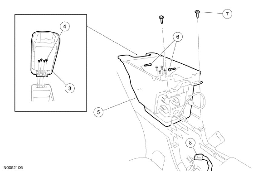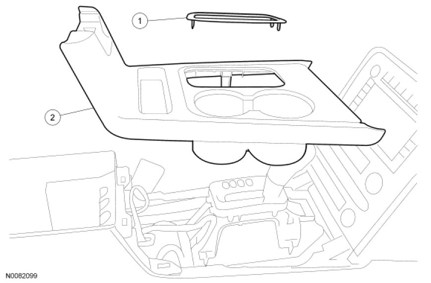 4. Remove the front floor console center finish panel by pulling straight up to disengage the clips.