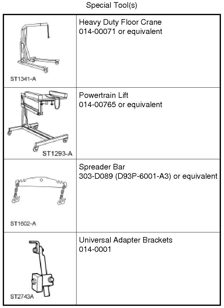 4. Using the Heavy Duty Floor Crane and Spreader Bar, position the engine and transaxle onto the Powertrain Lift table.