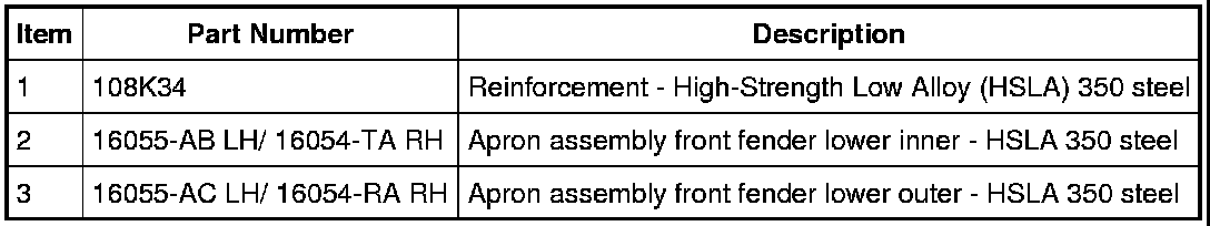 Ford Motor Company does not endorse, cannot attest to, and makes no representations regarding structural repairs (frames, rails, aprons and body panels) carried out using non-genuine Ford Motor Company parts or non-Ford-approved methods. In particular, Ford makes no representations that the vehicle will meet any crash safety or anti-corrosion performance requirement. Such parts and methods have not been tested by Ford, and may not meet Ford's requirements for safety, performance, strength, quality, durability and corrosion protection.