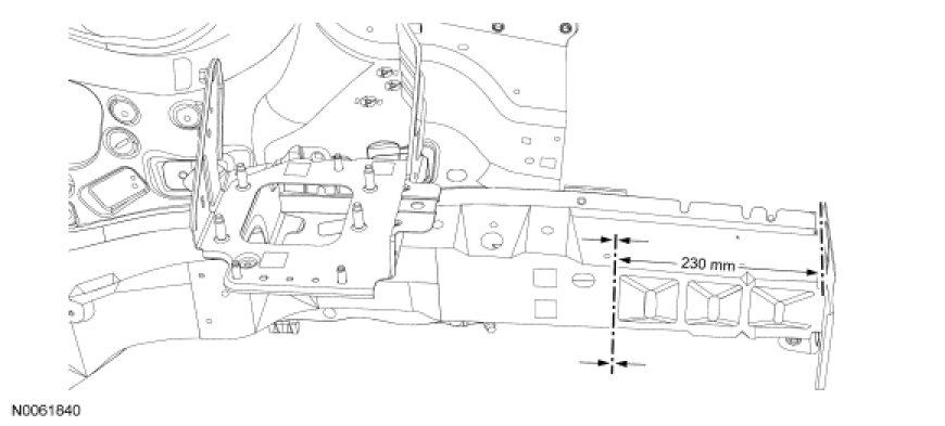 1. WARNING: Frame rail crush zones absorb crash energy during a collision and must be replaced if damaged. Straighten damaged frame rails to correct frame dimensions prior to frame member sectioning. Failure to follow these instructions may adversely affect frame rail performance and may result in serious personal injury to vehicle occupant(s).