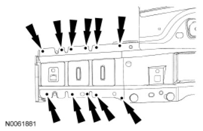 6. NOTE: If the front bumper beam is not damaged and will be reinstalled, it is spot-welded to the frame rails and must be removed.