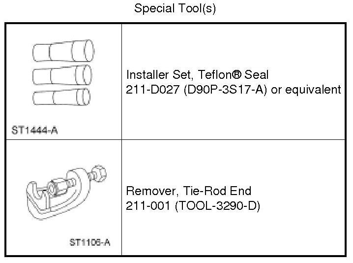 Using the Teflon(R) Seal Installer Set, install new O-ring seals (high-pressure hose pin, 3F886-AA, return hose pin 3F886-BA) onto the power steering lines.