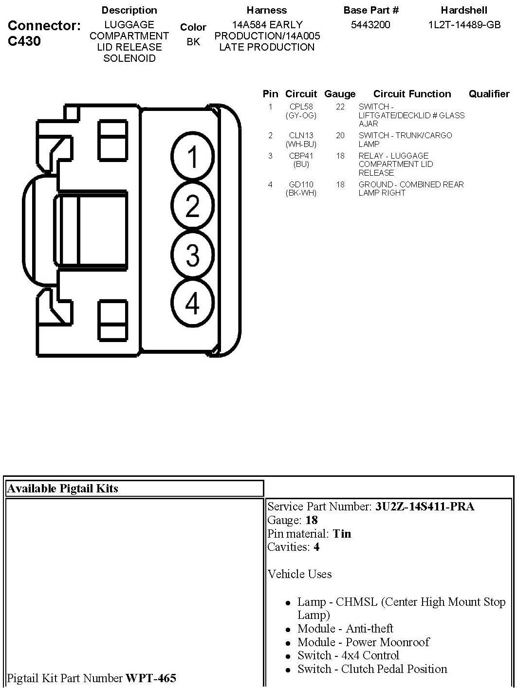 Power Trunk / Liftgate Lock Actuator