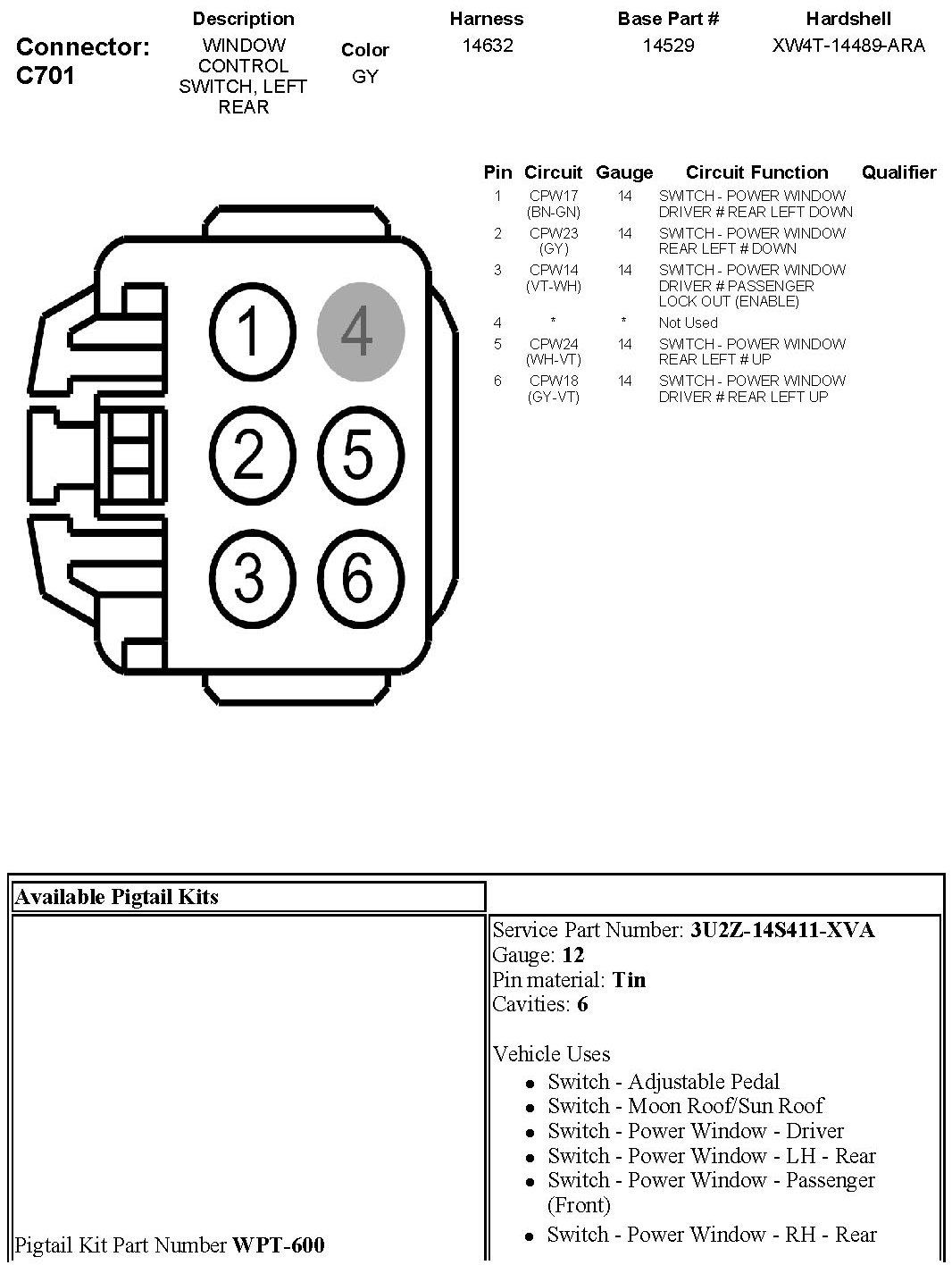Window Control Switch, Left Rear
