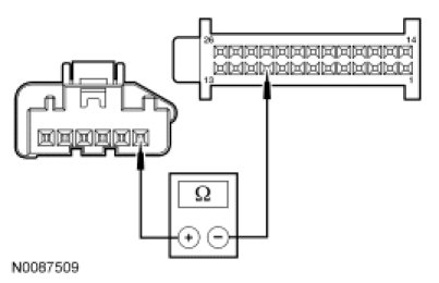 - Measure the resistance between HVAC module C2357A-10, circuit RH111 (GY/BU) and blend door actuator C289-1, circuit RH111 (GY/BU), harness side.