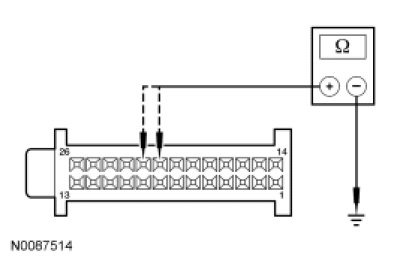 - Measure the resistance between HVAC module C2357A-10, circuit RH111 (GY/BU) and HVAC module C2357A-7, circuit VH439 (GY/VT), harness side.