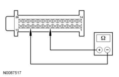 - Measure the resistance between HVAC module C2357A-22, circuit CH234 (YE/GN), harness side and HVAC module C2357A-21, circuit CH233 (VT/BN), harness side.