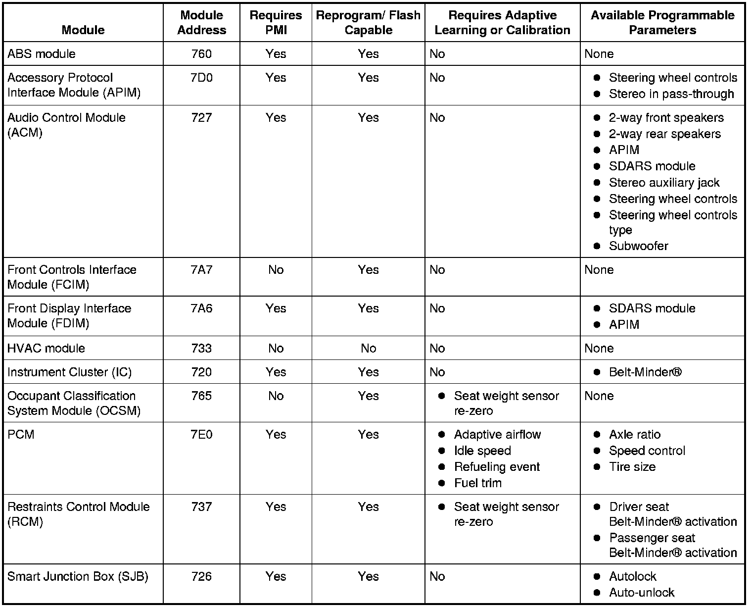 Programmable parameters are customer preference items that may be modified by the dealer via scan tool or in some cases, modified by the customer following a procedure listed in the vehicle Owner's Literature. While many configuration options may exist for a module, only a few of these options are programmable parameters.