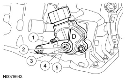 4. NOTICE: Do not use air tools on this bolt. Hold the manual control lever while tightening the manual control lever bolt, failure to the manual control lever shaft or the Transmission Range (TR) sensor could occur.