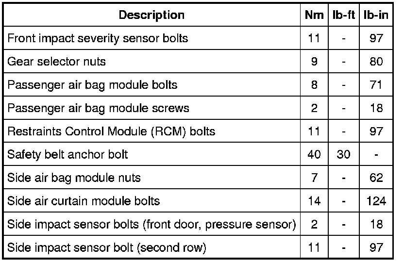 Torque Specifications