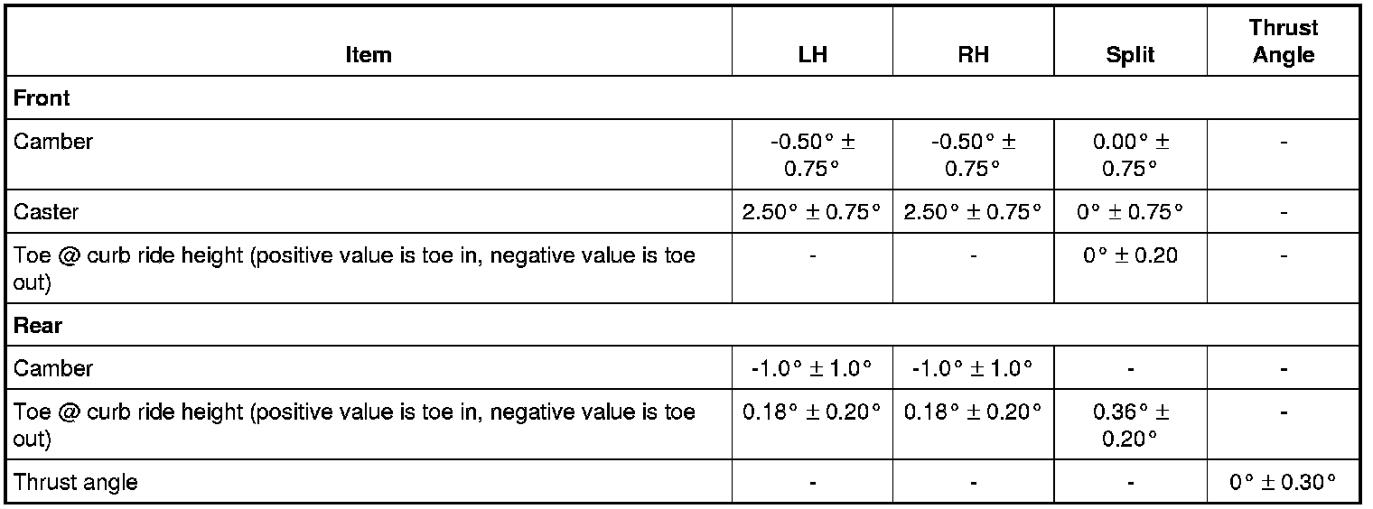 All alignment specifications are with the vehicle fuel tank full.