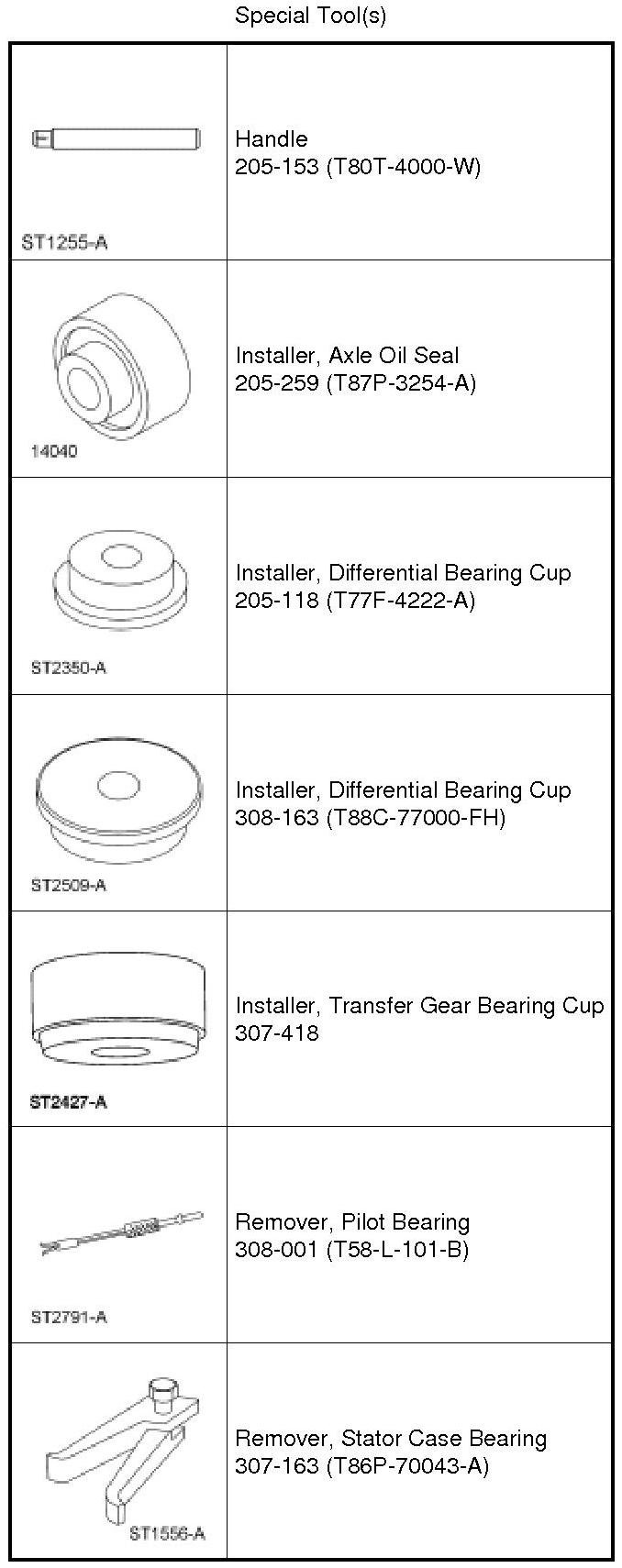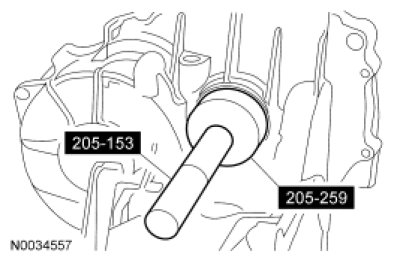1. NOTE: The converter housing side bearing cups for the transfer shaft bearing and differential case bearing will be installed during the assembly of the transaxle.