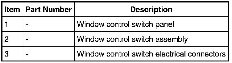 NOTE: Driver window control switch shown, all others similar.