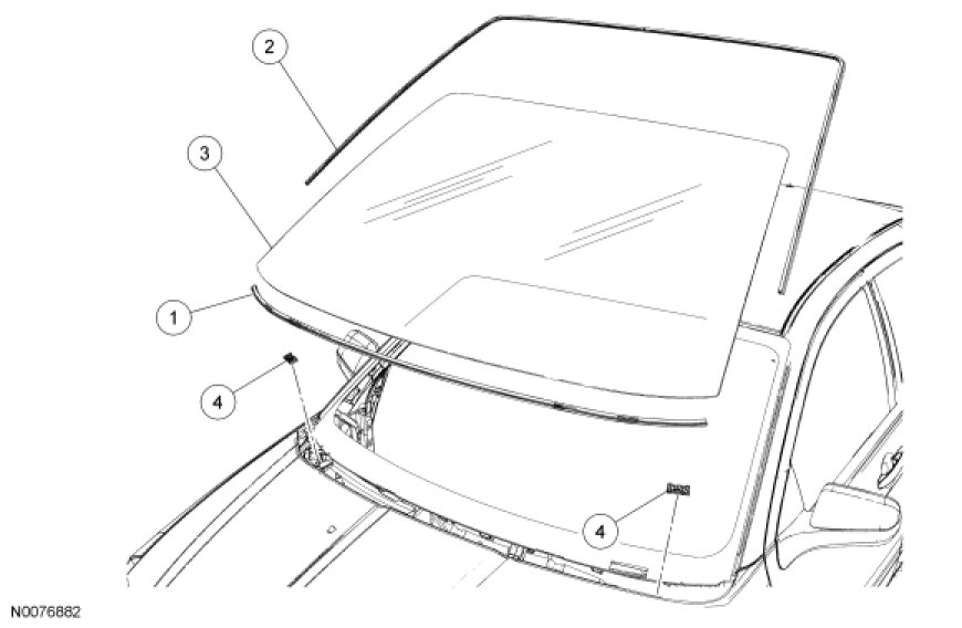 NOTE: Avoid scratching the pinch weld. Repair all minor scratches or exposed metal on the pinch weld following manufacturer's instructions. Use the same brand pinch weld primer, glass primer and urethane adhesive.