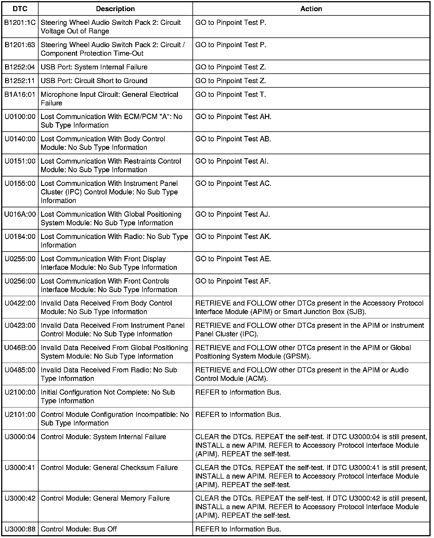Accessory Protocol Interface Module (APIM) DTC Chart