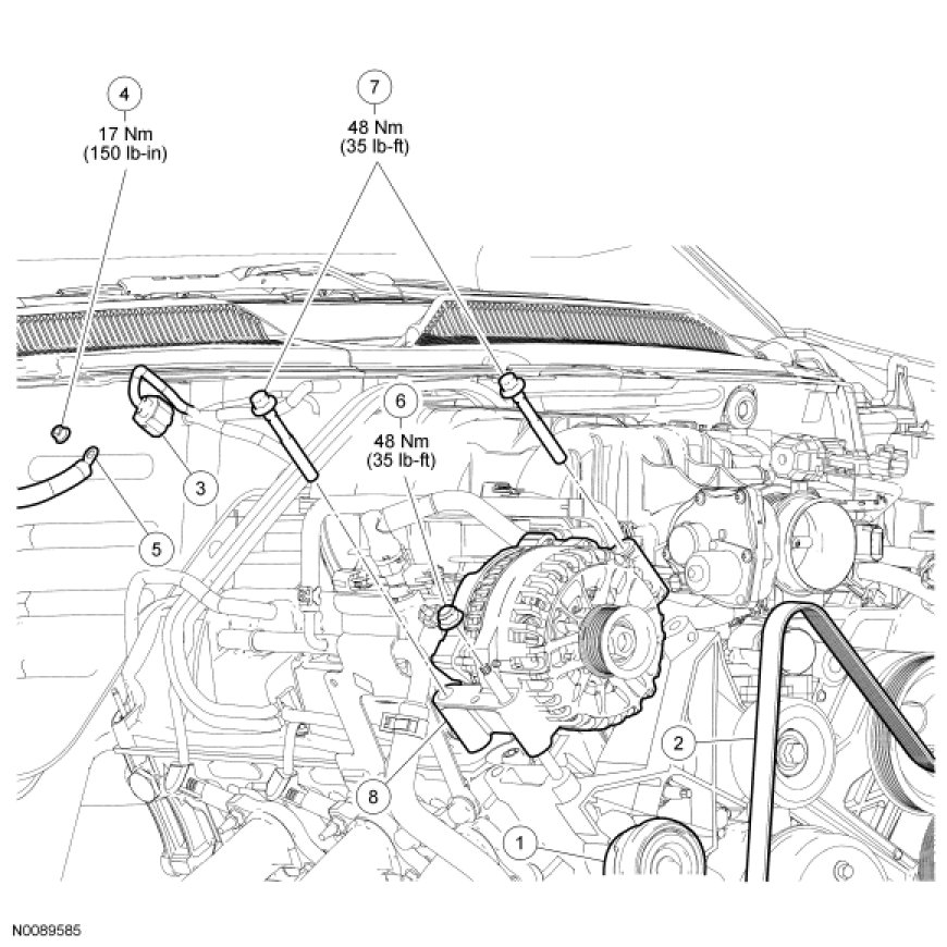 - To install, tighten to 48 Nm (35 lb-ft).