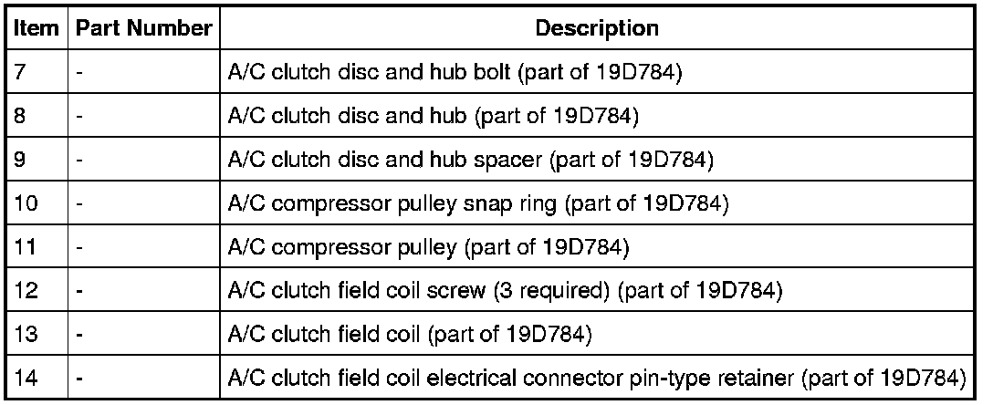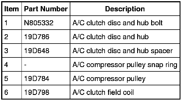 7. NOTICE: Do not use air tools. Damage to the Air Conditioning (A/C) clutch field coil or A/C compressor may result.