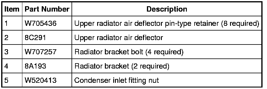 3. Remove the 8 upper radiator air deflector pin-type retainers and remove the air deflector.