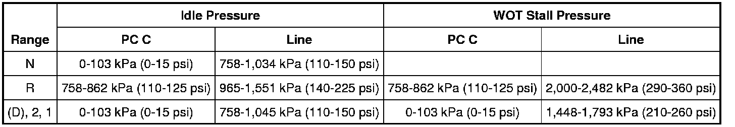 Line Pressure Chart - 4.0L and 4.6L Engines