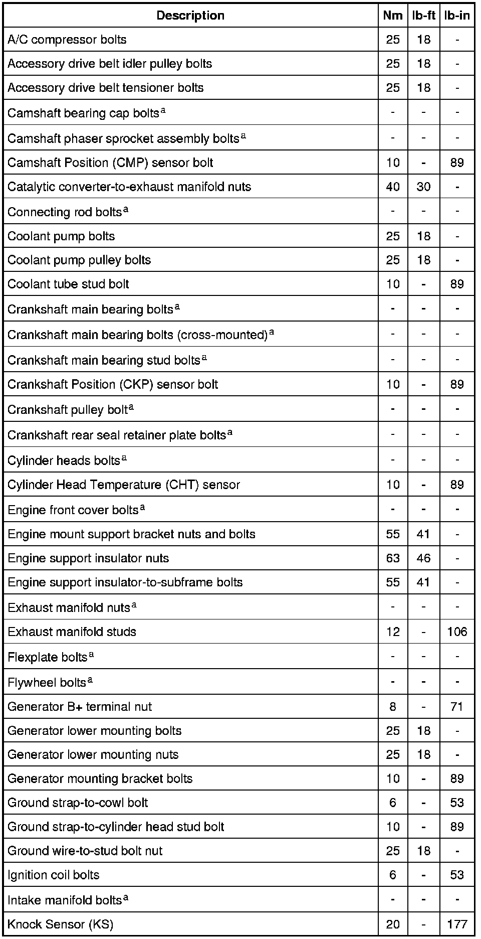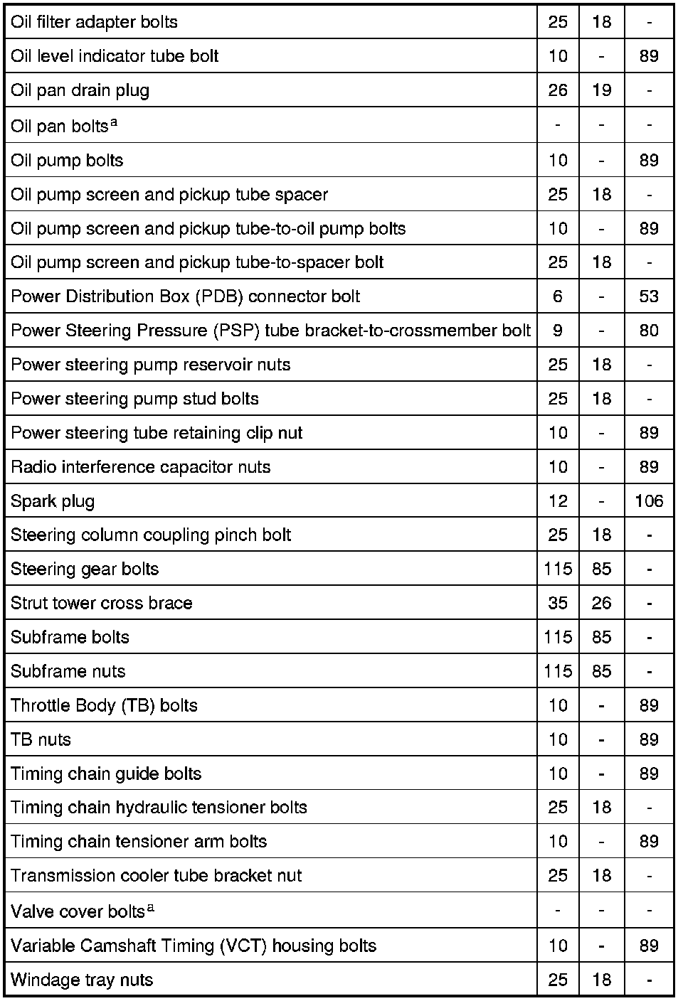 Torque Specifications