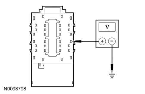 - Measure the voltage between SJB C2280D-16, circuit CBP41 (BU), harness side and ground.