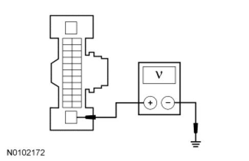 - Measure the voltage between the BCM-B C4368A-1, circuit SBB18 (YE/RD), harness side and ground.