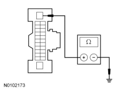 - Measure the resistance between the BCM-B C4368A-13, circuit GD110 (BK/WH), harness side and ground.