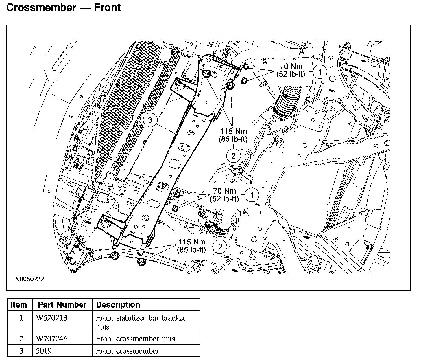 6. Remove the 4 front stabilizer bar bracket nuts.