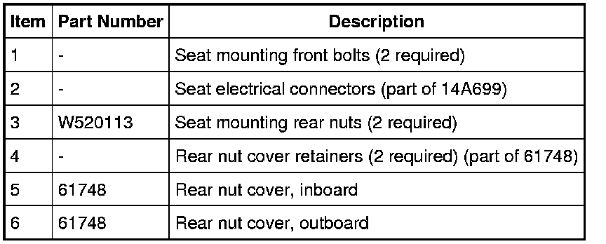 - For manual seat track, make sure both track rails are correctly aligned and locked in position before tightening the seat mounting fasteners.