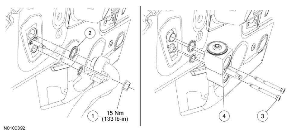 4. Remove the EGR system module tube. For additional information, refer to Emission Control Systems.